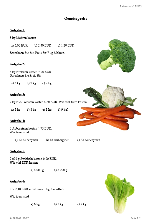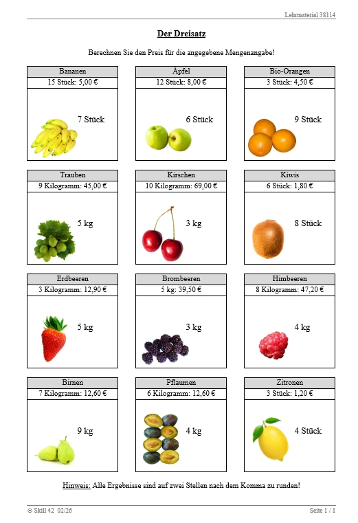 - Dreisatz/Arbeitsblätter
